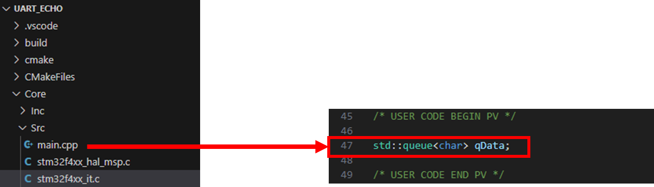 인터럽트가 도중에 멈추는 문제를 해결하기 위해서는 수신되는 데이터를 인터럽트에서 수신한 후, 해당 데이터에 대한 처리는 main함수에서 처리하는 것이다. 수신된 데이터를 main 함수에서 처리하기 위해 Queue를 사용하여 Main 함수에서 수신된 데이터의 유무를 확인 하는 방법을 사용할 것이다.