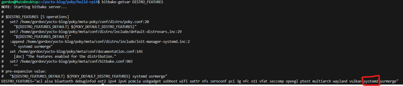 DISTRO_FEATURES 내 "systemd"가 있는지 확인합니다.