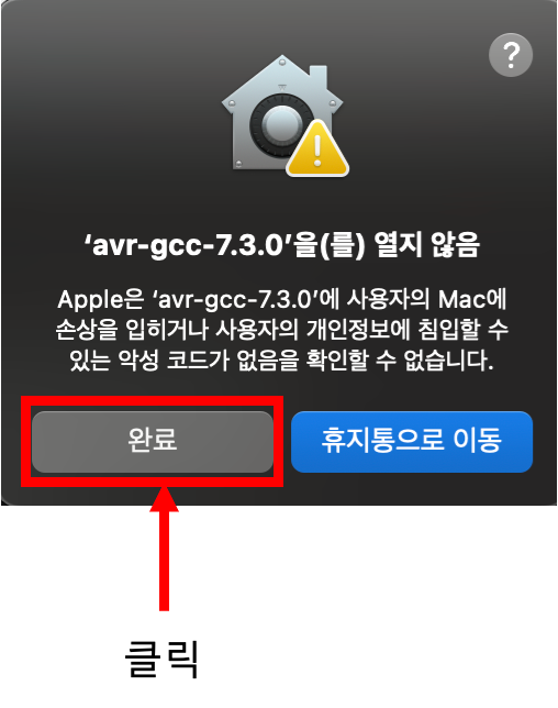이제 다시 터미널로 다시 "avr-gcc"를 실행하고 비밀번호 입력 하여 사용자 인증을 통해 프로그램을 허용해주면 앞으로 문제 없이 사용가능합니다.
