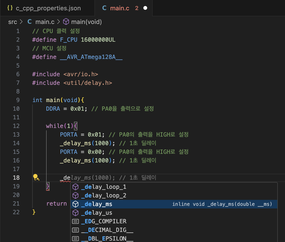 Mac에서 Atmel(AVR) MCU 개발을 위한 환경 구축 - 4 : VS Code에서 펌웨어 작성 본문