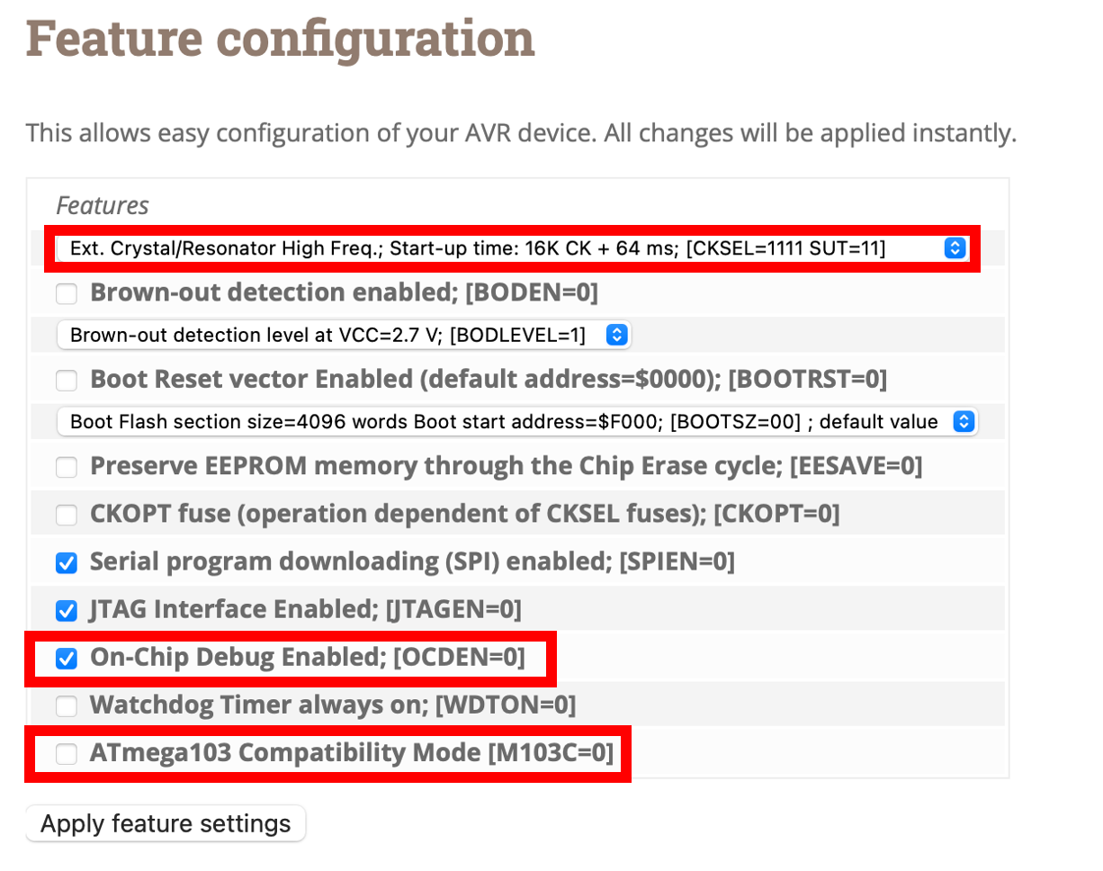 아직 퓨즈를 설정하지 않았다면 아래 5번을 참고하여 퓨즈를 설정을 하면 정상적으로 동작합니다.