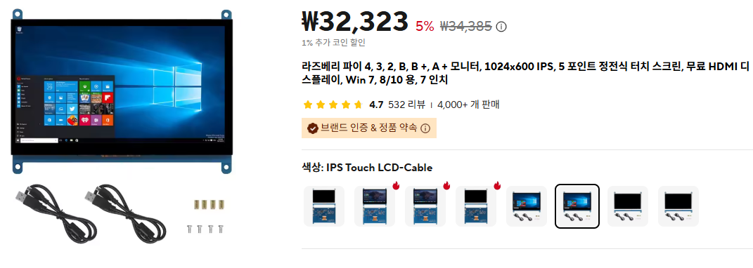 하지만 한국에서는 소형 디스플레이를 파는 곳을 발견하기 힘들고, 발견하더라도 너무 비쌉니다(공식 7인치 디스플레이가 11만원;;). 그렇기에 알리 익스프레이스에서 관련 제품을 찾던 중 저에게 딱 맞는 디스플레이를 발견하여 주문하였습니다.