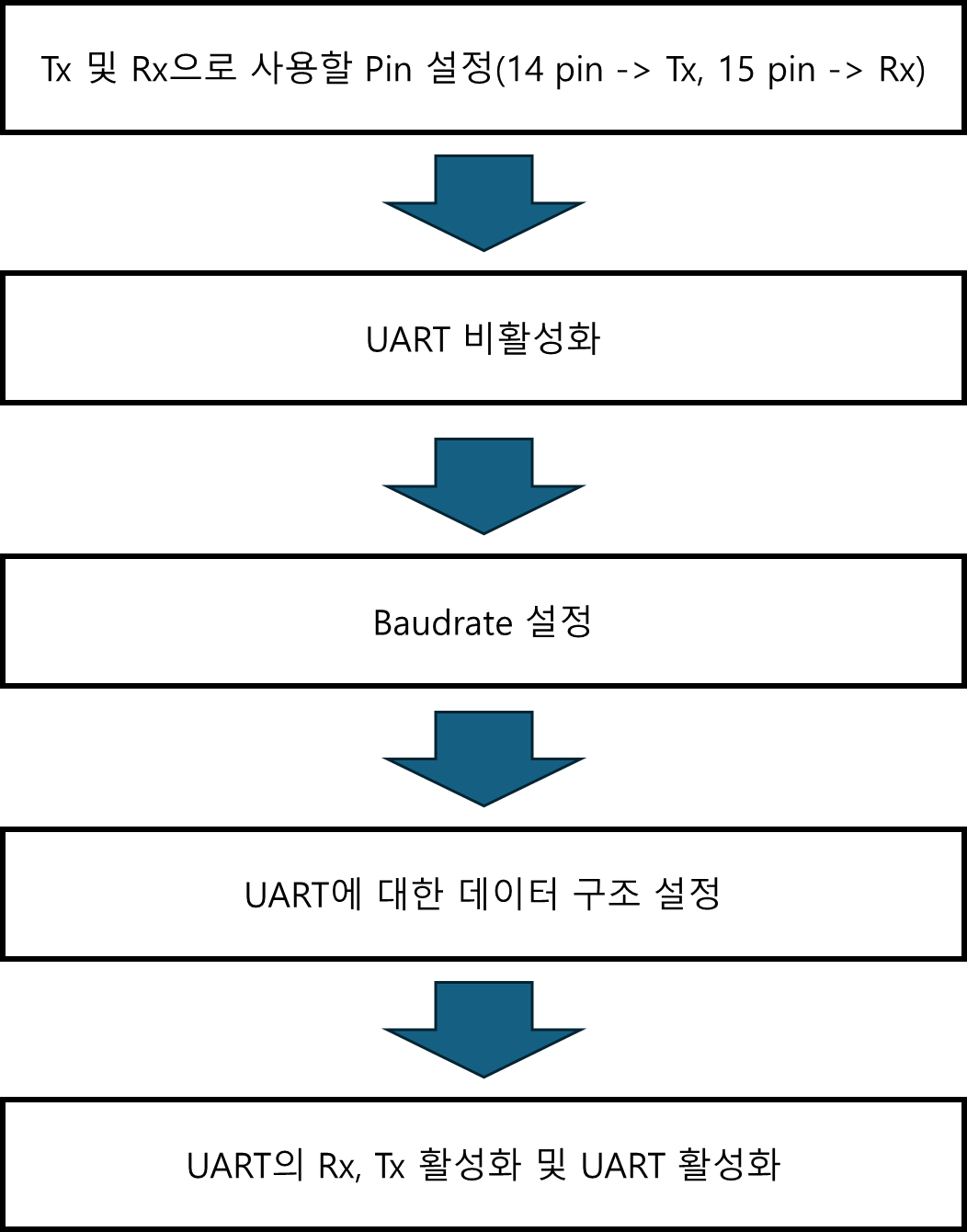 // UART의 송신 수신 활성화 및 UART 통신 활성화