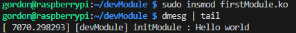 sudo insmod firstModule.ko