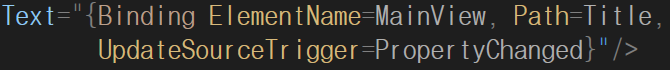 Text="{Binding ElementName=MainView, Path=Title, UpdateSourceTrigger=PropertyChanged}"/>