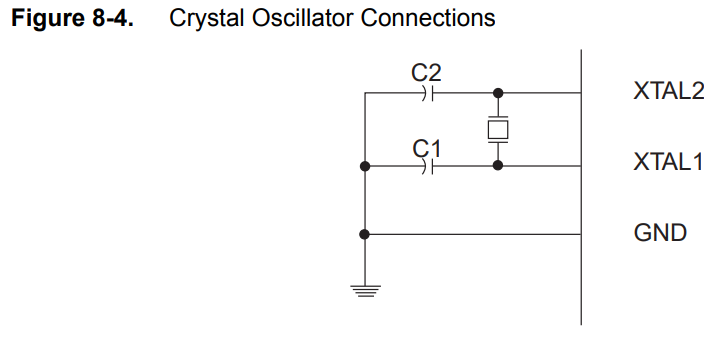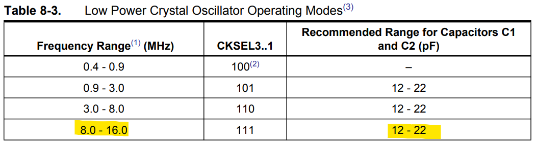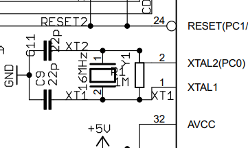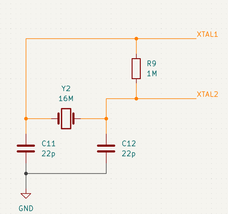 위 보이는 것처럼 16MHz의 경우 12 ~ 22pF 을 사용하라고 Datasheet에 명시되어 있으며 1M 저항을 사용한 것은 Arduino UNO 회로에서 사용하고 있기 때문입니다.