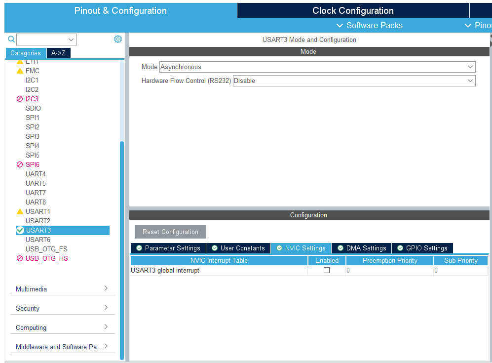 PC와 통신하는 UART는 사용하는 Board에 따라 다르게 설정되어 있을 수 있다. 제가 사용하는 Nucleo-F429ZI 보드는 UART3가 PC와 통신하고 있음을 확인 할 수 있다.