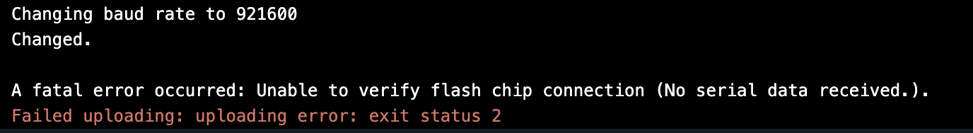 Baudrate를 921600보다 낮게 설정하면 해결 된다.