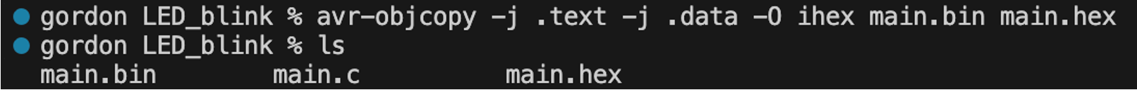 avr-objcopy -j .text -j .data -O ihex main.bin main.hex