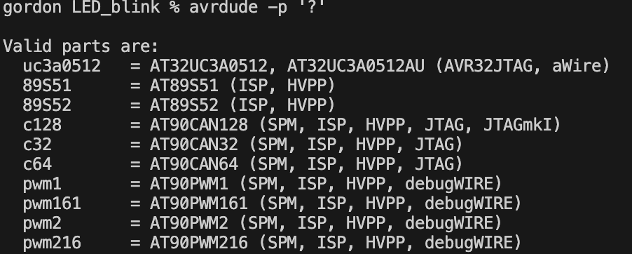 avrdude -p '?'