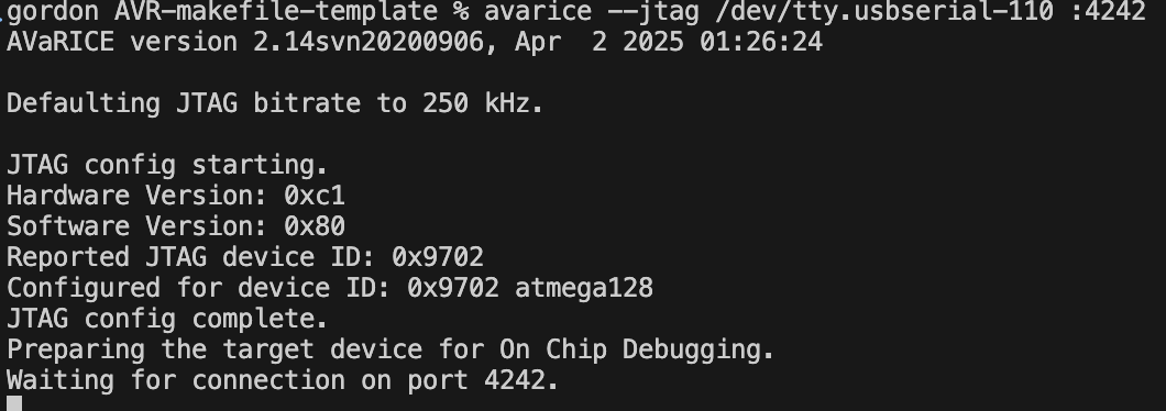 avarice --jtag <JTAG 디바이스 파일> :4242