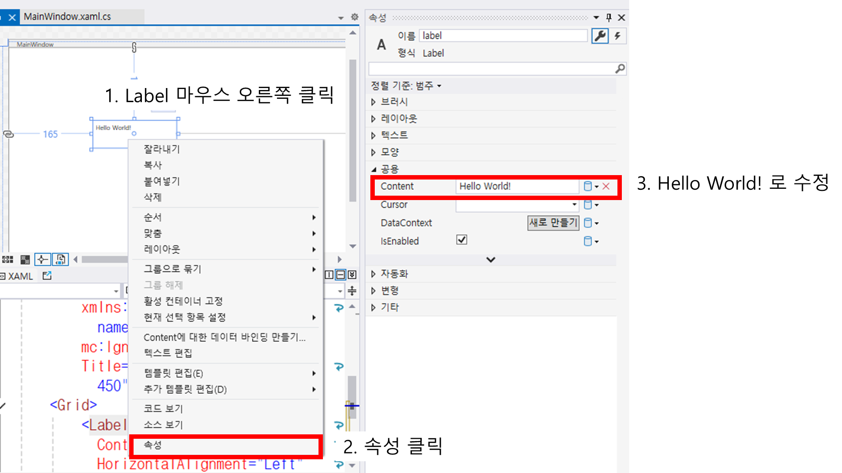 [WPF] WPF 프로젝트 생성 및 Hello World 출력