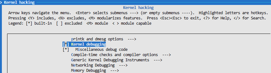 이제 리눅스 커널에 대한 설정이 필요합니다. GDB는 프로그램 내 디버깅 심볼을 기준으로 디버깅을 하고 있습니다. 그러므로 Linux 커널에 디버깅 심볼이 포함하도록 설정을 해주어야 합니다.